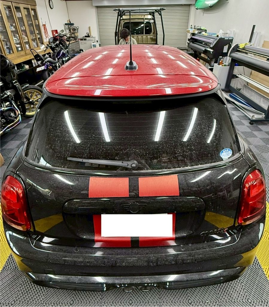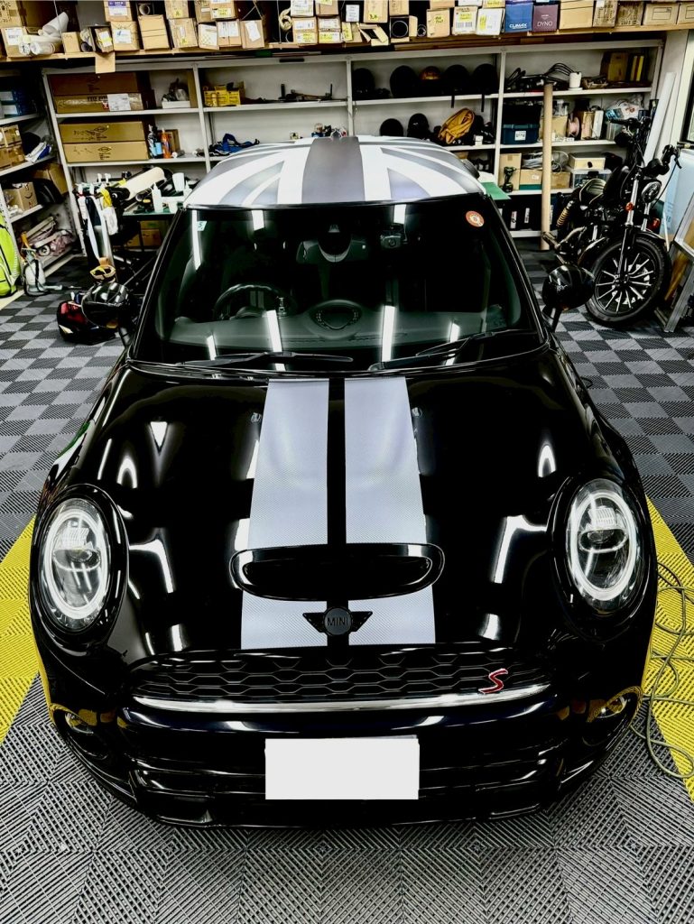 MINIクーパーのストライプ貼替やルーフラッピングのご依頼です。